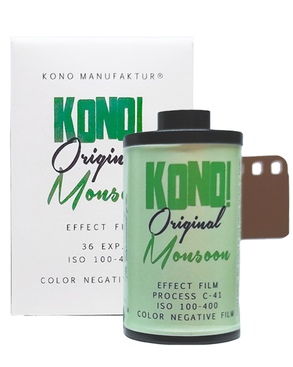 35mm Color Negativ Film KONO! Original Sunstroke, Moonstruck, Candy, Monsoon, Galaxy, Mirage, Process C41, created by hand using "The Reanimator"- a device developed by KONO! in 2015. High quality pre-expose process for great results.
