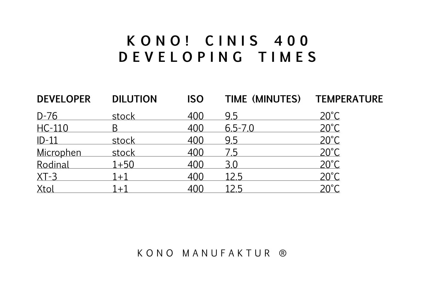 Any black&white lab can develop KONO! black & white films